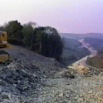 Above looking down towards Two Bridges in 1989 with the new A30 being cut through part of Strayer Park, Trevell.