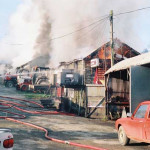 Around 1964, another local company, ‘Messrs. Hambly’s of Whitstone’, who were the agents for David Brown, held talks with M. A. Bate & Co. and they amalgamated their businesses in 1964, Mr Jones carrying on as a director of the new company. At some later date, probably after the retirement of Mr Jones, the company became known as “Hamblys of Whitstone,” with their main works at the old Dunheved Ironworks until, on 21st January, 1998, a disastrous fire (see pictures below) broke out, destroying practically everything at the depot (see below).