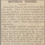 The Launceston pageant was in 5 episodes and depicted the historical events in the town between 1089 and 1862 and was produced by Mrs. W. G. Evans and performances took place on the Castle Green on July 21st, 22nd, and 23rd. It involved a cast of some 400 people. This is how ‘the Cornish and Devon Post’ reported the pageant on July 25th 1931 by Sydney D. Brimmell.